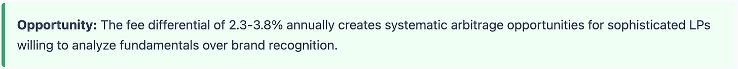 The venture industry has developed sophisticated marketing capabilities while maintaining surprisingly basic analytical transparency standards. This creates genuine arbitrage opportunities for LPs willing to prioritize mathematics over social proof.