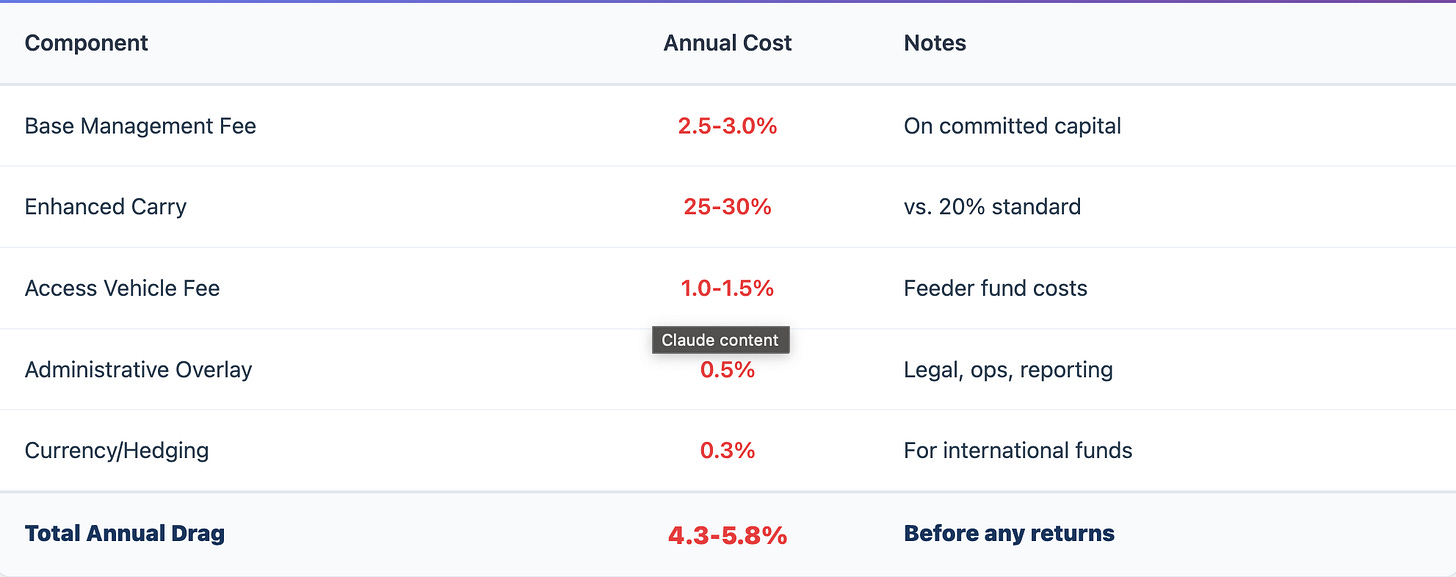 Let's examine what accessing established managers actually costs when you add up all the layers: